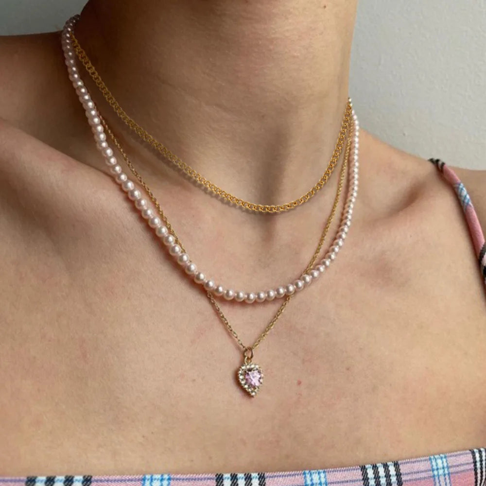 YWZIXLN tendance bijoux élégants mariage multicouche collier de perles pour les femmes mode blanc Imitation perle collier ras du cou N0323