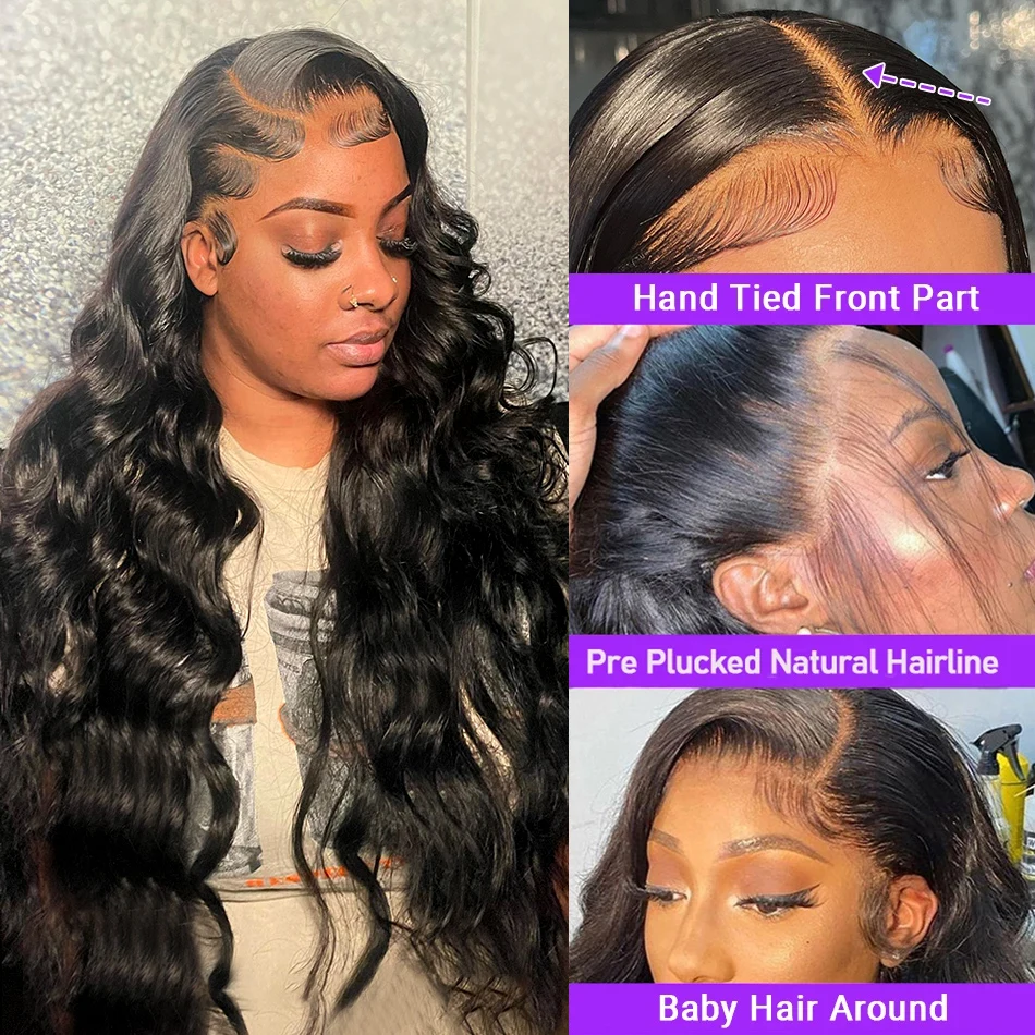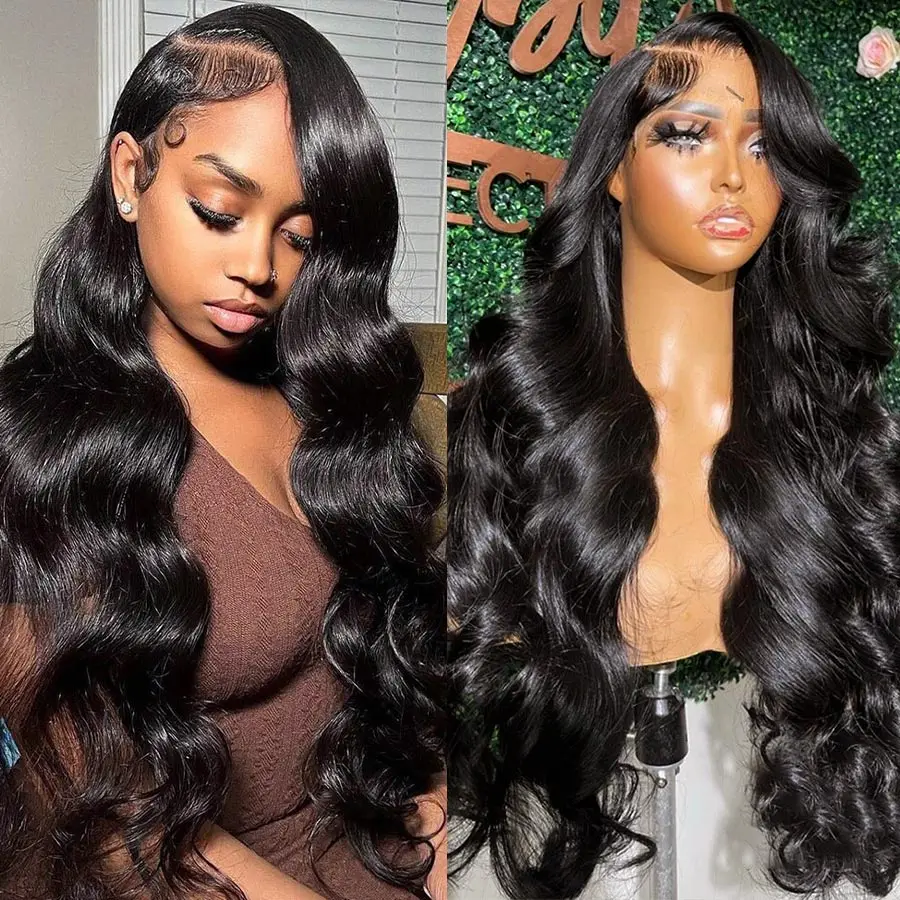 180% 13X6 dentelle frontale vague de corps perruque Transparent indien Perruques pour les femmes 13X4 dentelle frontale perruque cheveux humains pré plumé perruque