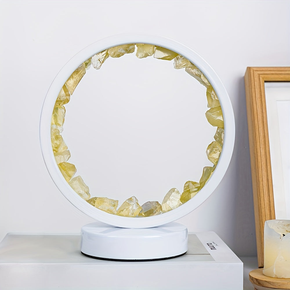 1pc, Rechargeable LED Bedside Lamp with Natural Quartz Amethyst Cluster - Soothing Night Light for Bedroom and Desk - Decorative Circle Lights
