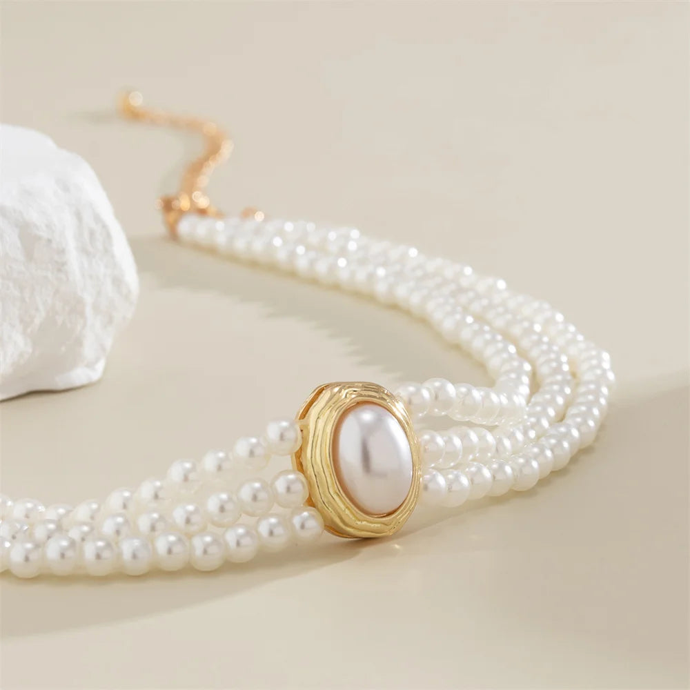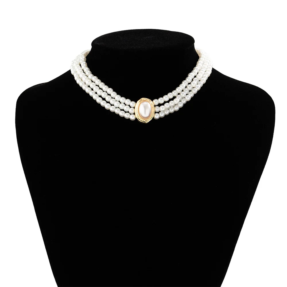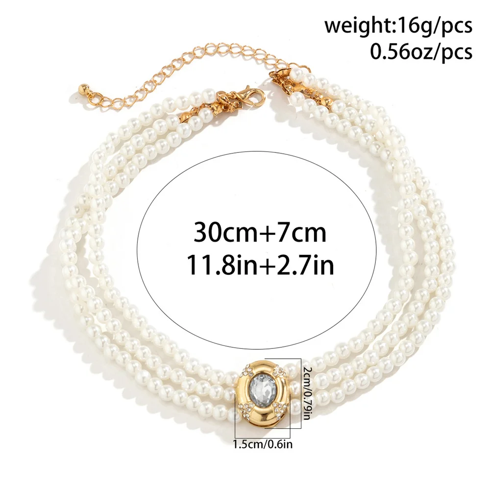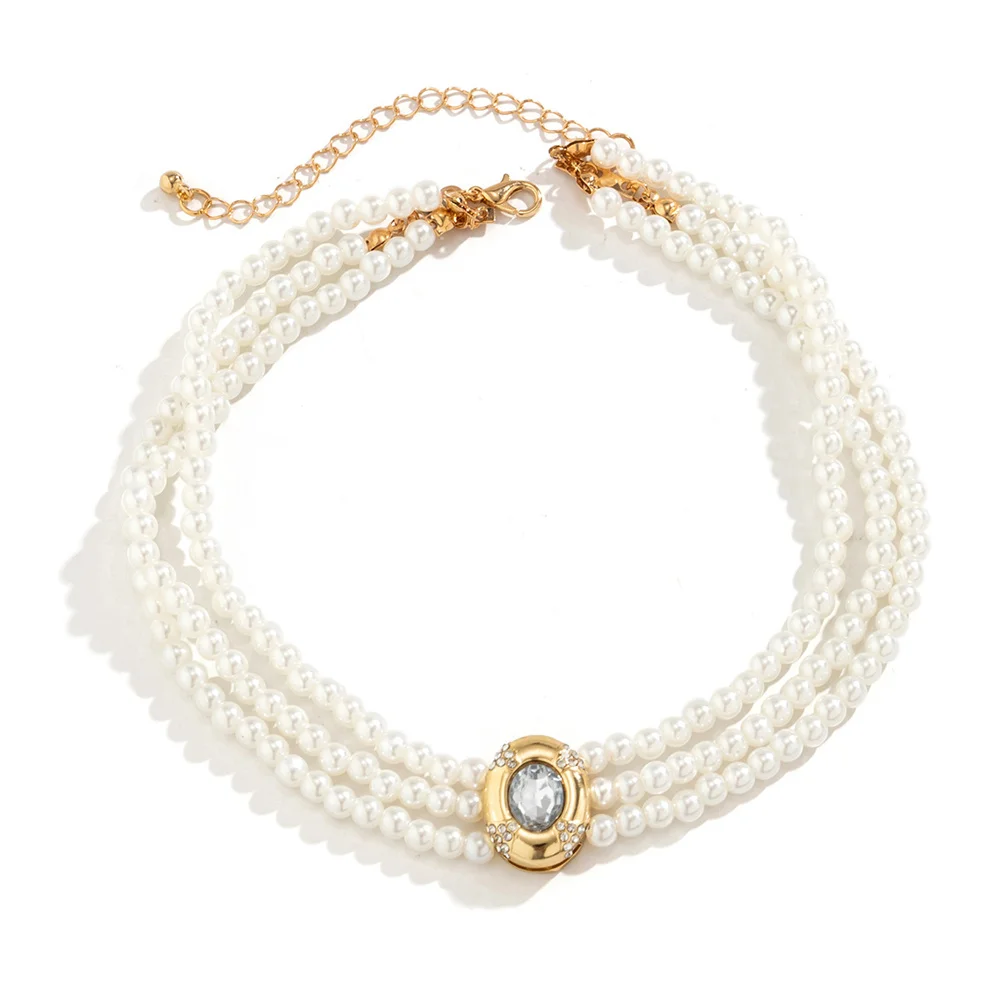 Colliers ras du cou Vintage multicouches pour femmes, Imitation de perles, strass ovales de luxe, accessoires bijoux pour fête de mariage