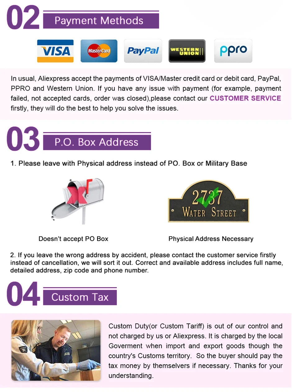 R : AliExpress accepte les cartes de crédit, les virements bancaires (TT), Western Union et Money Bookers pour les détails du paiement. Si le paiement échoue, veuillez nous contacter, nous vous guiderons sur la façon de payer.